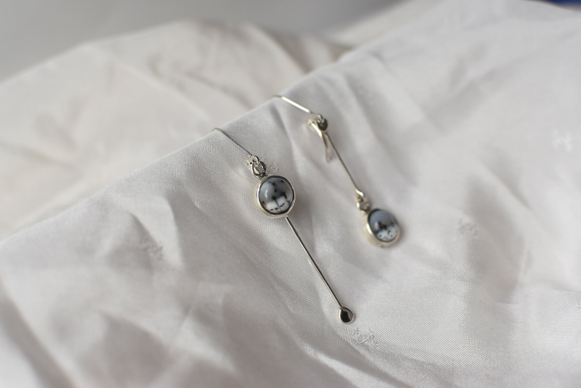 Boucles d'oreilles asymétriques - Pendante - en argent et merlinite (opale dendritique)
